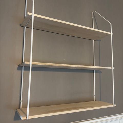 Roosanvärinen metallinen seinähylly