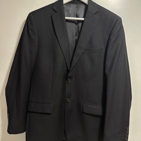 Puku on ollut vain muutaman kerran päällä, eli lähes kuin uusi. Puvun takki sekä -housut ovat molemmat todella hyvässä kunnossa, ehjiä ja siistejä.
