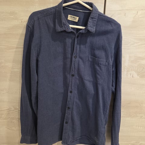 Vaaleansininen kauluspaita, erinomainen kunto. 100% puuvilla. Säilytyksestä rypyssä.