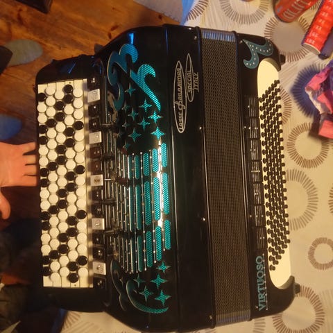 Tämä Zero Setten täysikokoinen kolmiäänikerta on ollut perimätiedon mukaan J. Juseliuksen keikkasoittimena hänen myöhempinä soittovuosinaan. Laadukas harmonikka antaa selvän ja heleän äänen, on tiivis ja jämpti soitettava edelleenkin. Kelpaisi varmaan sinullekin!