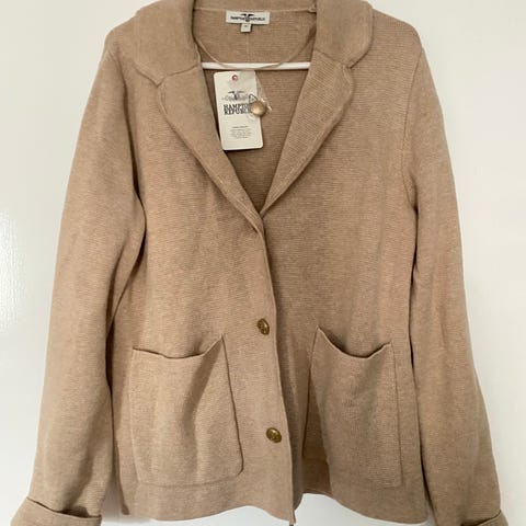Uusi neuletakki, puuvillaa, koko m. Kauniit kimaltavat napit.