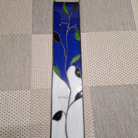 Myydään näyttävä ja kookas Tiffany-työ, akryyli, ripustusketju. Aiheena Kolibri ja kukka. Koko 53cm•31cm. Tämä on erittäin sopiva kooltaan esim. oven ikkunaan.