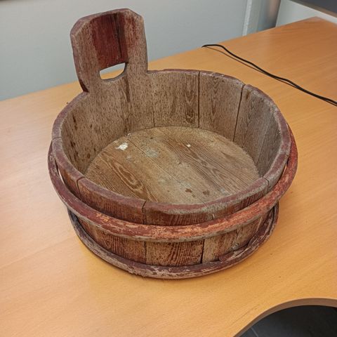 Vanha puuastia. Halkaisija 25cm, korkeus 8,5cm.