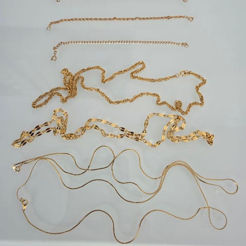 Rannekoru erilaisin riipuksin kulta väri, joustava, ehjä ja hyväkuntoinen.