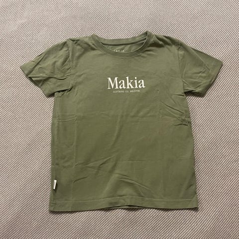 Makian musta t-paita koossa 110/116. Meille uutena ostettu, kahdella pojalla käytetty. Muuten siisti, mutta jonkin verran haalistunut.