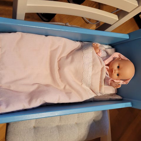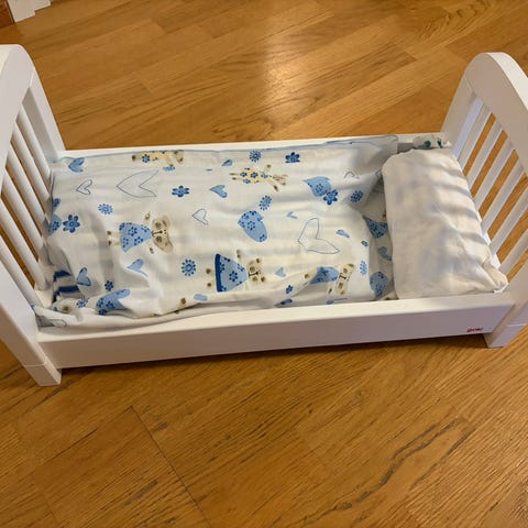 Toimituksessa mukana: 1 x nukkesänky, 1 x tyyny, 1 x mobiili 4:llä roikkuvalla lelulla.
