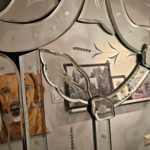 Italialainen Art Deco peili. Peilin korkeus 99 cm ja leveys 56 cm.