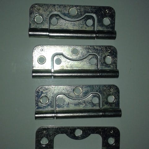 Käyttämättömiä ikkunasaranoita (rakosaranoita) 4 kpl. Saranalehti 70 x 20 mm.
