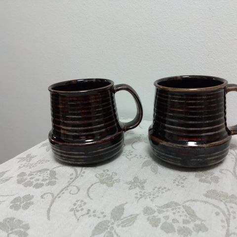 Myydään Arabian Mahonki-sarjan pannu ja 2kpl kuppi+tassi. Mahonki on Ulla Procopén suunnittelema sarja, jossa on syvänruskea lasite uurretulla pinnalla. Mahonki oli Arabian tuotannossa vuosina 1961-72.
