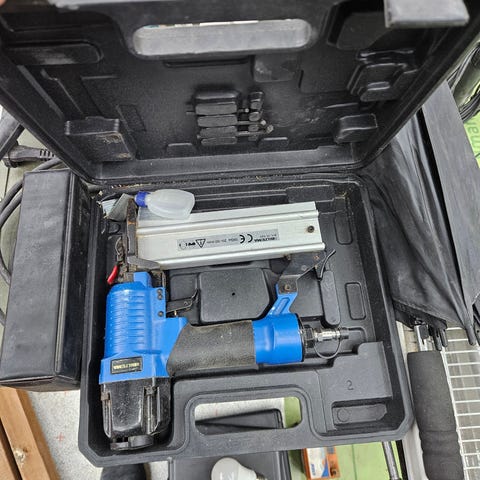 Vuokralle akku listapyssyjä. Vuokraan kuuluu 2 akkua, laturi ja itse pyssy.