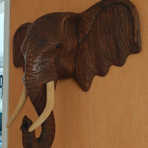 Puinen Norsunpää leveys 30 cm korkeus 32 cm syvyys 17 cm .Nouto Tuusula.