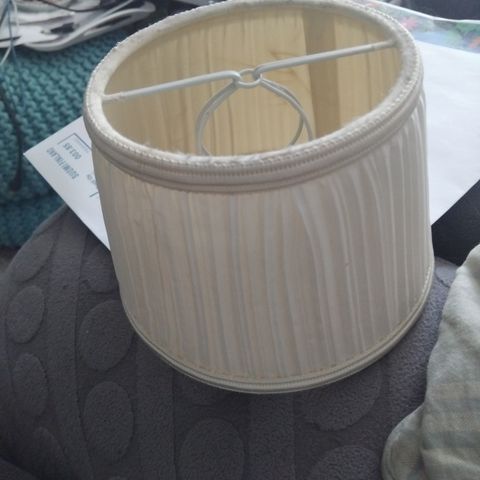 Iso lampunvarjostin pöytä- tai jalkavalaisimeen. Säädettävä korkeus kiinnitykselle. Korkeus 29 cm, ylähalkaisija 34 cm, alahalkaisija 44 cm. Väri "greige"