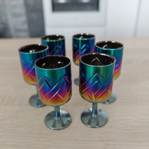 Priimakuntoiset, kauniisti kilahtavat kristalliset snapsilasit, 6 kpl:een setti. Kork. 6 cm.