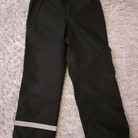 Land & Lake -merkkiset harmaat välikausihousut on ostettu lapselle käytettynä, joten niissä näkyy käytön jälkiä (etupuolella lähinnä polvien kohdalla mutta takapuolelta housut ovat hyväkuntoiset). Vyötärö ja lahkeet ovat säädettävissä ja lahkeiden suissa on heijastimet.