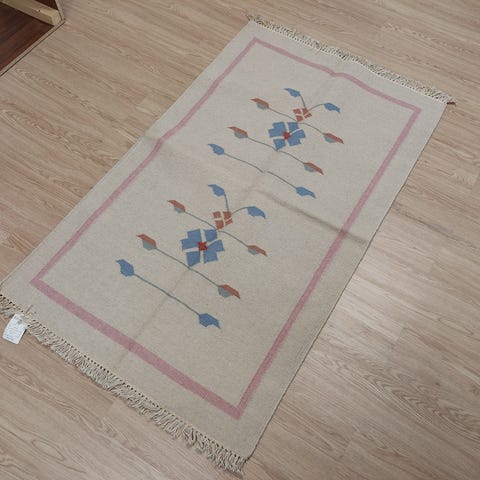 Hieno käsin kudottu villamatto, jäänyt ylimääräiseksi. Hienosti ommeltu ja kantattu sekä kudottu, kuin useasta palasta tehtynä. Matto on uusi.