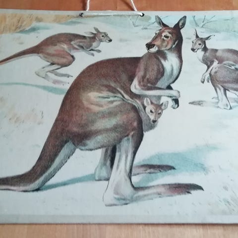 Myydään kehystetty opetustaulu: aiheena koirat.