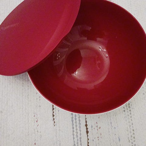 Esittelymalli, käyttämätön TupperCare vauvan kulho silikonipidikkeellä (joka pitää sen paikallaan pöydällä) sekä kulhon ilmatiivis kansi. Vetoisuus 5,2 dl.