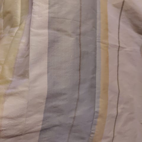 Aprikoosin/persikan värinen silkkijäljitelmä. Raidat kuteensuunnassa. Leveys on 160 ja pituus 130 cm. Nouto Tesomalta sovitusti tai postitus jolloin postikulut ostajalle, myös ToriDiili käy.
