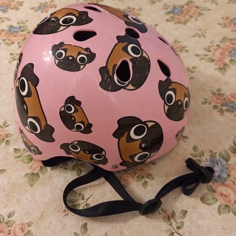 Kypärä, hyväkuntoinen. Ollut lapsella pyöräily ja luistelu vähäisessä käytössä.