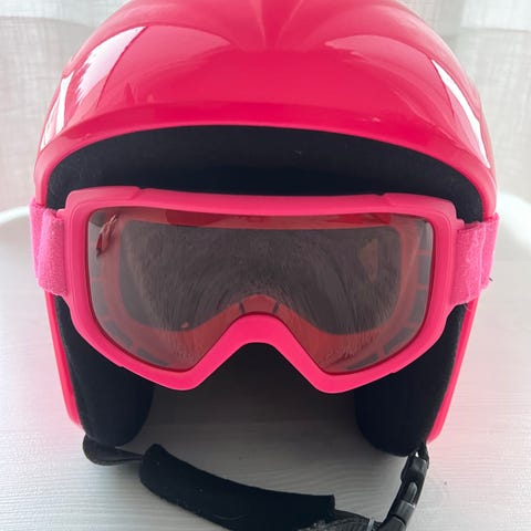 Käytetyt, ei pahemmin jälkiä. Lasit en varma onko aikuisten vai junior. Hyvin vastaa kokoaan, M aikuisen päässä. Myydään mieluiten yhdessä. Mmm
