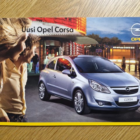 Myydään Opel Corsa -esite. Laadukas, kanttikylkinen painos.
