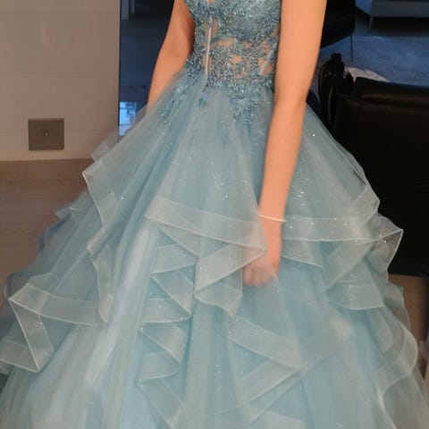 Myydään upea kerran tanssittu, Zazabellasta 2025 vanhoihin uutena ostettu, vanhojentanssimekko+vannehame pukupusseineen.