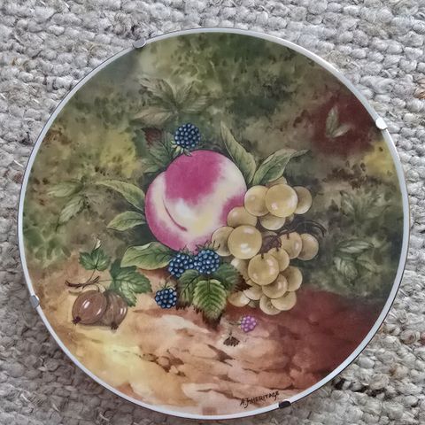 Oljesta tehty seinälautanen, halkaisija on 30 senttimetriä.