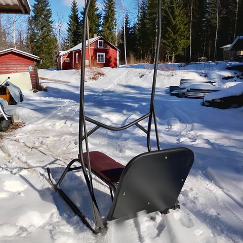 Kevyt putkireki. Normaali sila valjastus.Penkin ja jalkaramppien etäisyys säädettävissä.Mukaan tulee pitkä rintaremmi.