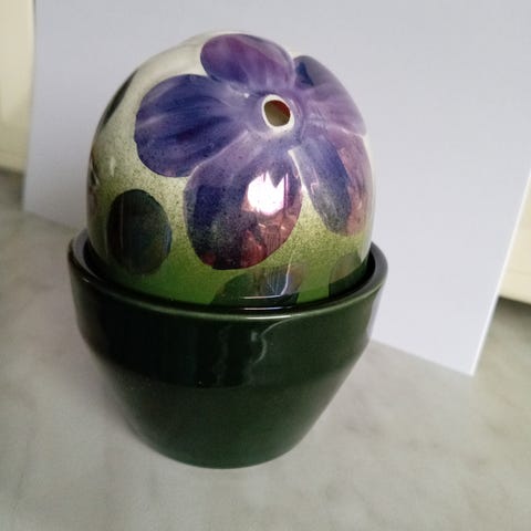 Myydään Arabian Ikikukka koriste-esine, violetilla Saint Paulia-kukalla, hyväkuntoinen. Korkeus 12cm