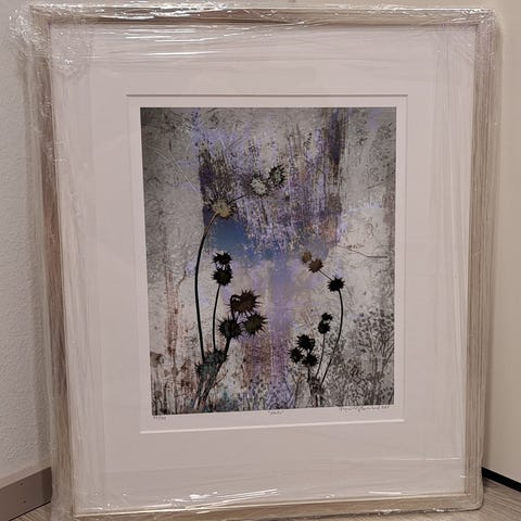Tässä olisi (Pohjavirta & Rosenlund) taitelijapariskunnan taideteos "Floraali" Pigmettivedos fine art kartongille. Taulu on vielä sinetissä ja hienosti kehistetty puukehyksiin... OvH 430€
