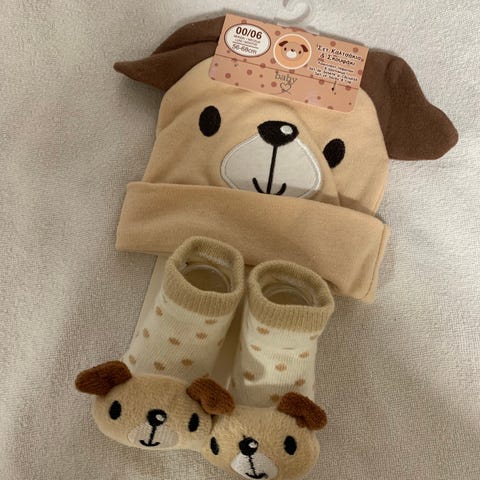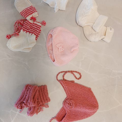 Käsinneulottu vauvan asusteet 0-6kk