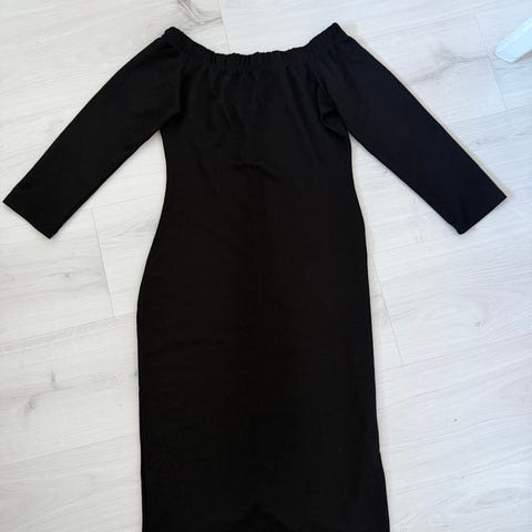 Musta liukaspintainen joustava mekko koko M. Pituus olka-helma on n. 111 cm.