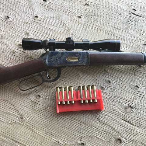 Winchester Model 65 - .25-20 W.C.F. Takatähtäin vaihdettu ja etujyvää mahdollisesti korotettu. Lukkorungossa olevat ylimääräiset reiät molemmin puolin, ovat tulleet kiikarin kiinnityksestä. Puuosat ehjät ja siistit. Tätä mallia valmistettu 1933-1947, 5700 kpl. Tämä ase on valmistettu 1938. Vaatii voimassa olevan hankkimisluvan. 390,-