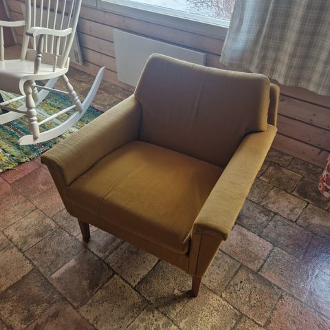 -60 luvun nojatuolit ja Pöytä, tuolit ehjät ,pöydässä kolhu ja käytössä kulunut