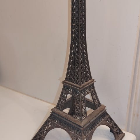 13 cm korkeus. Tummanharmaa="hopeinen".
