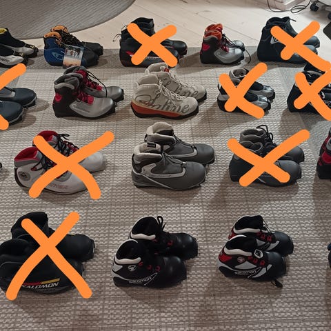 Myydään NNN hiihtomonoja ja luistelumonoja, rivit vasemmalta-oikealle. Erikseen myynnissä SNS hiihtomonoja (joita ei enää kaupoissa uutena myydä).