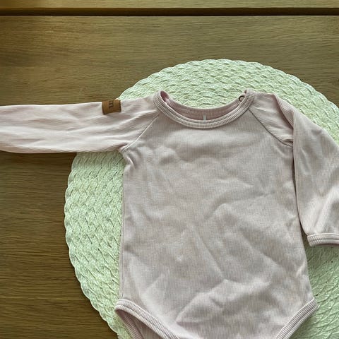 Metsola vaaleanpunainen kukkabody koko 62. Sävyt eivät enää uuden kirkkaat. Hyväkuntoinen ja ehjä.