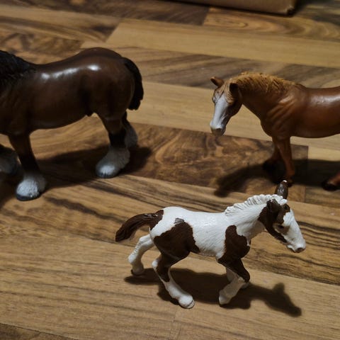 Myynnissä erilaisia Schleich hevosia. Hinnat yritetty määritellä hevosen harvinaisuuden ja kunnon perusteella. Hintaa saa tarjota! Joissakin hevosissa jälkiä maalipinnassa (näkyy kuvista), koska ovat laatikossa kolisseet yhteen ja vuosien varrella leikitty paljon. Muuten hevoset ovat kaikki ehjiä, eikä jäljet leikkejä haittaa :) Postitus onnistuu.