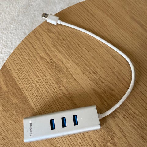 Goji USB 3.0 3-porttinen USB-hubi gigabitin ethernetillä, valkoinen