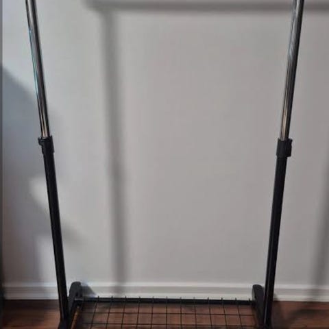 Jyskistä ostettu ja muutaman kuukauden ollut käytössä. Henkareista jäänyt hieman jälkeä tankoon, mutta muuten hyvässä kunnossa L105 x K170 x S46