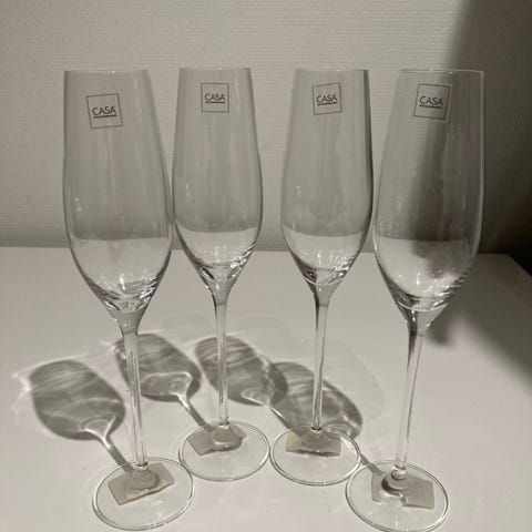 3 kpl näyttäviä,korkeita kuohuviinilaseja, Stockmanin myymää Casa - mallistoa menneiltä vuosilta.