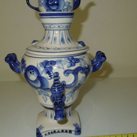Maljakko osittain lasitettu. Oikeastaan oranssit kohdat ja apinat, takkia lukuun ottamatta, on lasitettu. Lasitetuissa kohdissa ei iskemiä, halkeamia tai muutakaan vikaa. Lasittamattomassa osassa kahden viimeisen kuvan mukaista kulumaa.