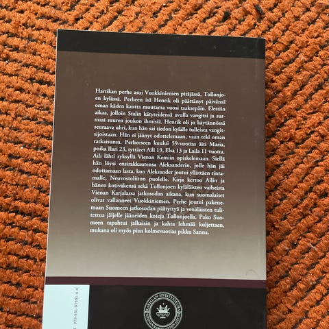 Pietarinsuomalaisen perheen kronikka. Kansipaper vähän kärsinyt. Muuten siisti. Postitan