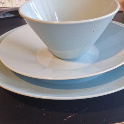 Muutaman kerran käytössä uuden veroiset 28 cm lautaset. Lautasia on 10 kpl.