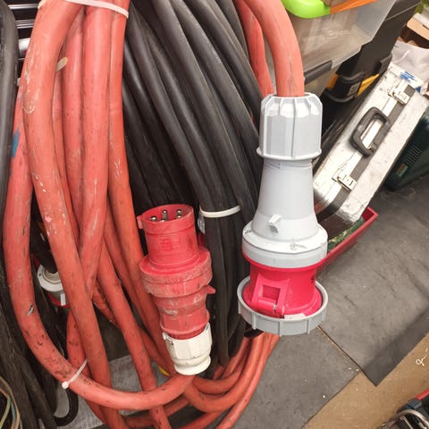 Myydään haaroitusjatkorasia jossa on5-napainen 16A voimapistorasia ja kolme sukopistorasia. IP44=roiskevesitiivis.Kumikaapeli 50cm