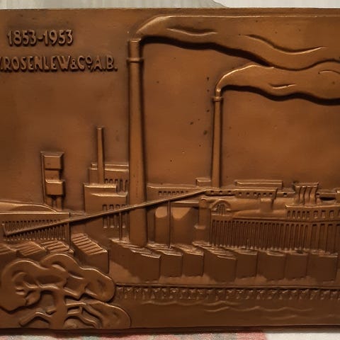 Reliefi, O.Y. W.Rosenlew & Co A.B. 1853 – 1953, Valmistaja Porin Konepaja, sign. P.Nykopp v-1952.