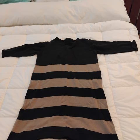 Sisällä ohut kangas, josta näkyy selän puolelta vähän läpi. Niskassa kaunis rusetti.
