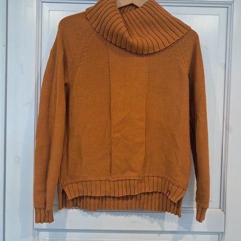 Myydään sinisen sävyinen neulepaita.