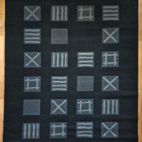 Kohtalaisen hyväkuntoinen matto. Yhdessä nurkassa pientä kissan repimää.