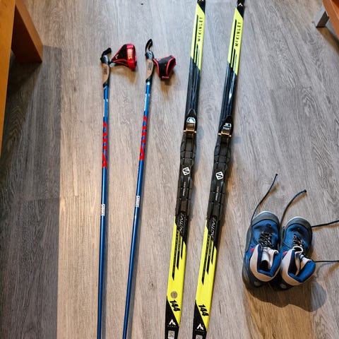 Mc Kinley junior sukset (150cm) ja sauvat (125cm), erinomainen kunto.